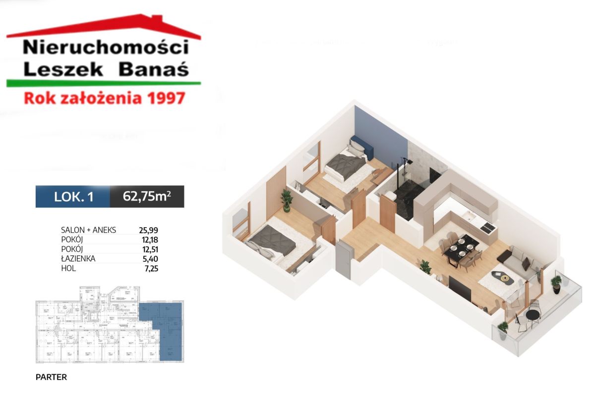 Nasz doradca bankowy przedstawi państwu nieodpłatnie najkorzystniejszą ofertę kredytu na budowę domu , zakup działki, mieszkania lub domu 601-637-737 Leszek Banaś leszek@banas24.pl Na naszej firmowej stronie internetowej znajduje się cała oferta nieruchomości, wystarczy w wyszukiwarce wpisać słowa Leszek Banaś . Zgodnie z Ustawą o Gospodarce Nieruchomościami Art. 179b. Po zrealizowaniu transakcji pobieramy od Kupującego wynagrodzenie dla biura pośrednictwa Nasza firma posiada ubezpieczenie OC pośrednika do kwoty 1,5 miliona zł Przedstawione informacje w ogłoszeniu nie stanowią oferty w rozumieniu art 66 i kolejnych Kodeksu Cywilnego , lecz mają jedynie charakter informacyjny. Wszelkie dane dotyczące nieruchomości uzyskano na podstawie oględzin i oświadczeń zamawiających.